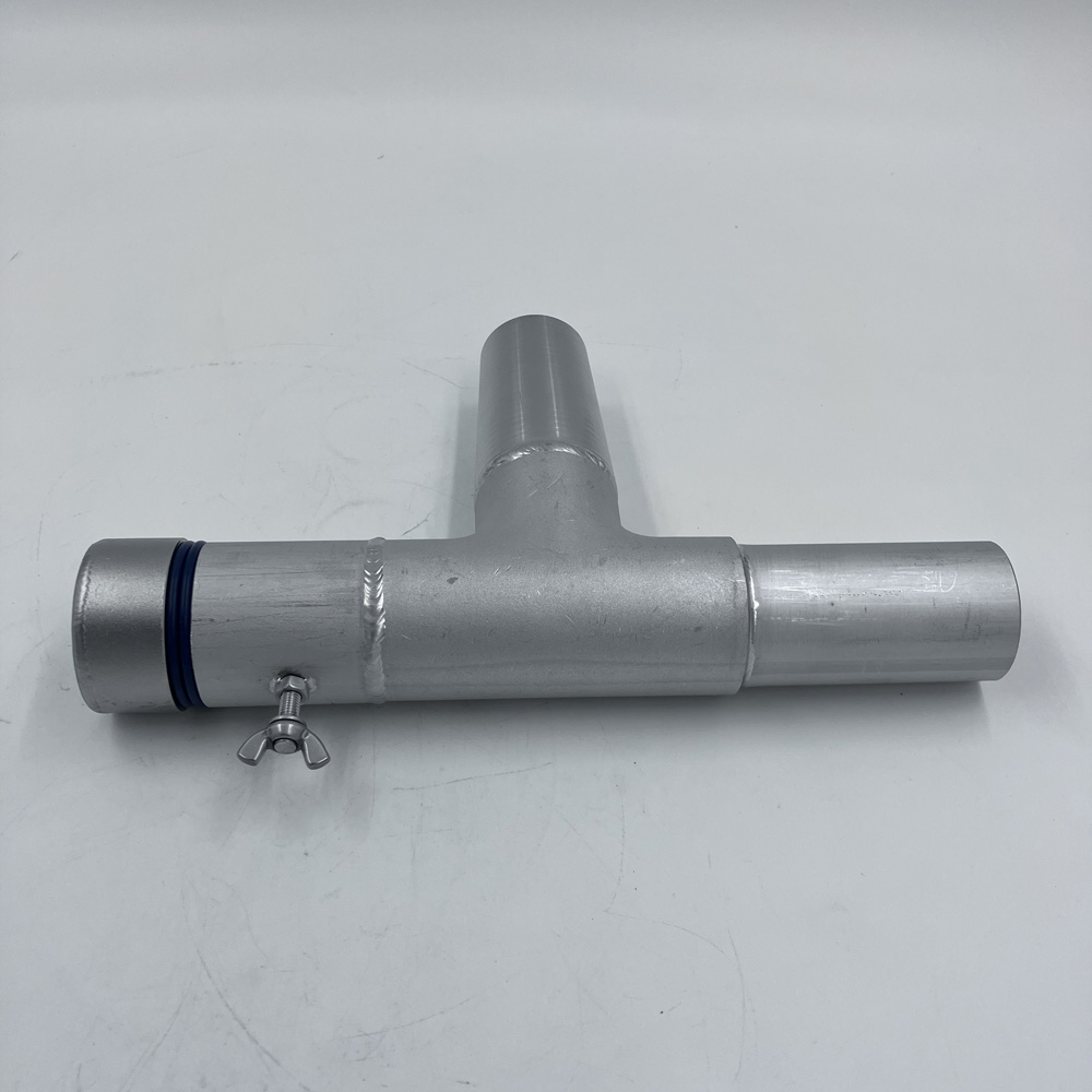 ・特徴:エルボ部をT型とする事で材料を意図的に残し、材料同士を衝突させる事で、投入管の穴空きを防止します